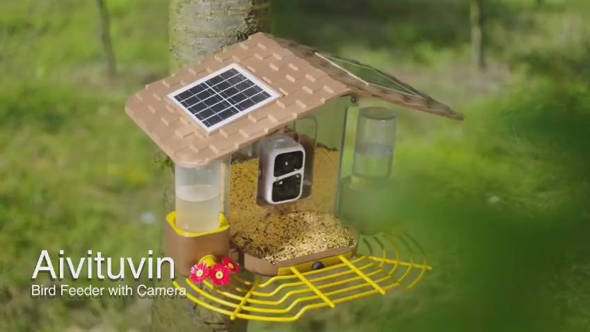 Mount it easily in your yard, fill the honey, water, and seed containers, and let the built-in camera record videos automatically when birds arrive.